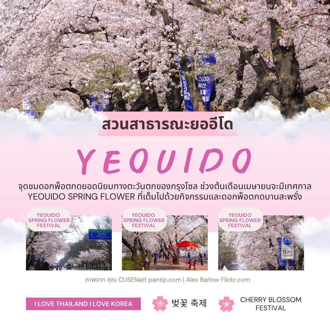 สวนสาธารณะยออีโด (Yeouido) การเดินทาง: รถไฟใต้ดินสายสีม่วง ลงสถานี Yeouido