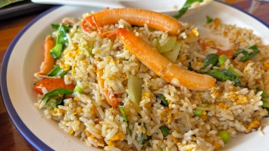 그 외에도 막 조리되어 나온 뜨끈한 게알 볶음밥은 향이 고소하고 맛이 담백하며, 큼지막한 게살이 듬뿍 들어가 있습니다.