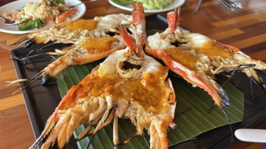이곳의 최고 메뉴는 대왕새우 구이!