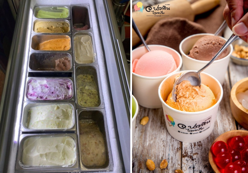태국식 수제 아이스크림 중에는 따오푼 시장의 오랜 전통을 자랑하는 ‘아.쁘라틴(อ.ประทิน)’ 가게가 있습니다.