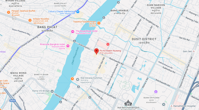 짜오프라야 강변의 밤유안 삼센 지역에 위치한 작은 식당입니다.