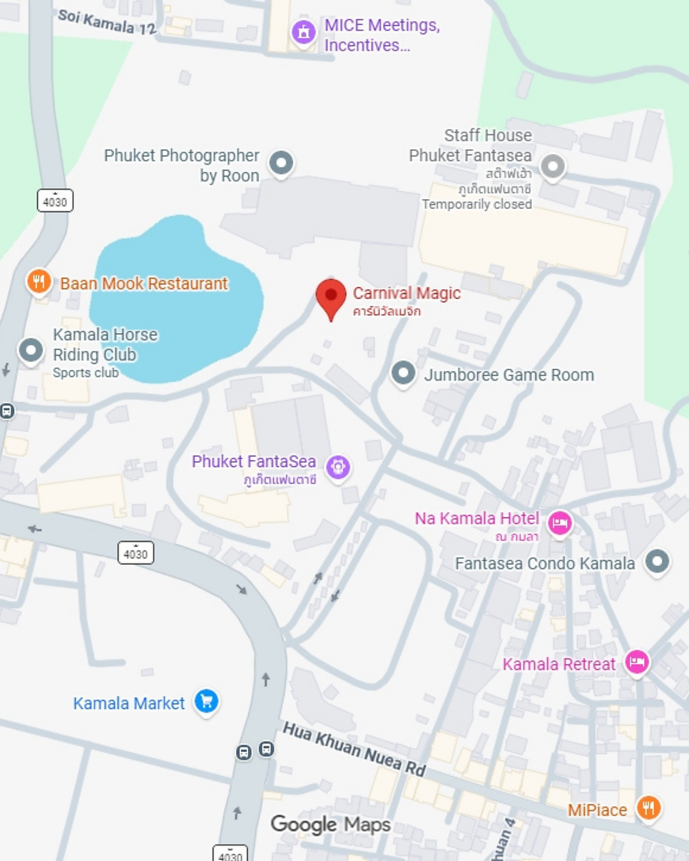 카니발 매직 푸켓(Carnival Magic Phuket)은 대형 야간 테마파크로, 카말라비치 지역에 위치하며 Phuket FantaSea와 가깝고 빠통 지역에서도 멀지 않다.