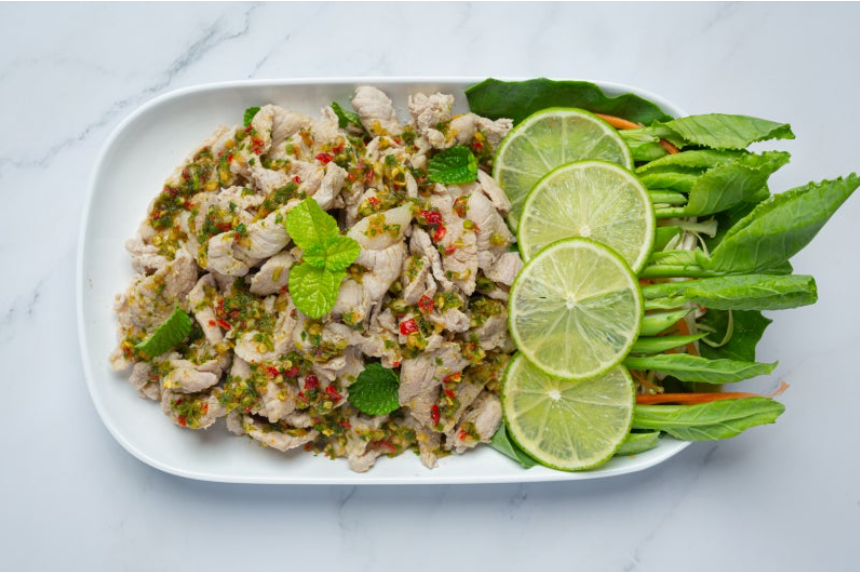 무 마나오(돼지고기 라임 샐러드)는 모임이나 파티에서 인기가 많은 메뉴 중 하나입니다.