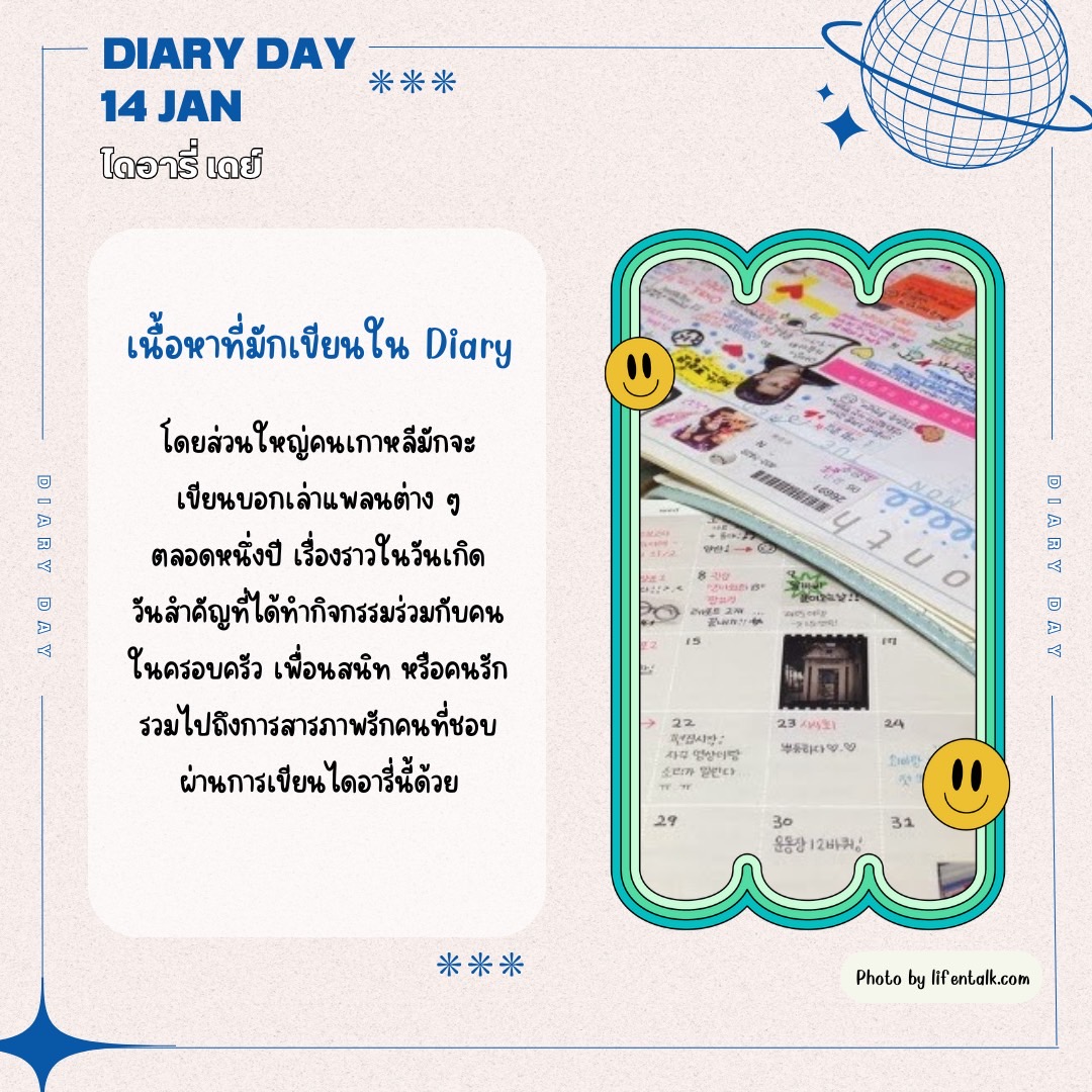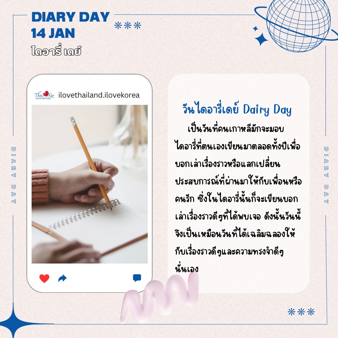จะตรงกับวันที่ 14 มกราคมของทุกปีของประเทศเกาหลี เป็นวันที่คนเกาหลีมักจะบอกไดอารี่ที่เขียนเรื่องราวความทรงจำมาตลอดปีของตนเองให้กับคนที่เรารัก เพื่อเป็นการแลกเปลี่ยนเรื่องราวของกันและกัน นอกจากนี้ยังถือเป็นวันแรกและเดือนแรกของการเฉลิมฉลองวันแห่งความรักอีกด้วย