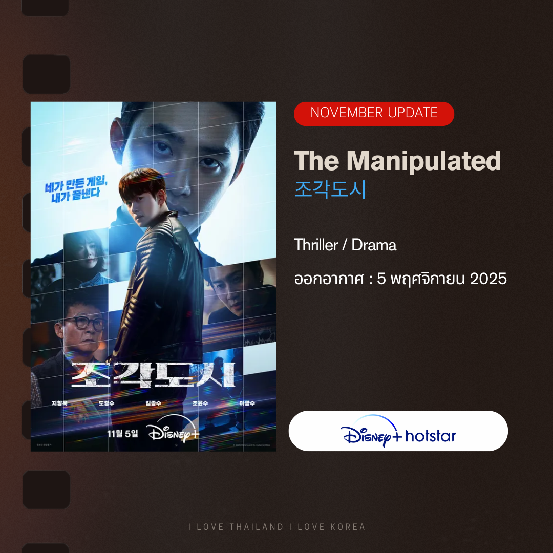 แนว : Thriller / Drama ออกอากาศ : 5 พฤศจิกายน 2025 ช่องทางรับชมในไทย : Disney+ Hotstar