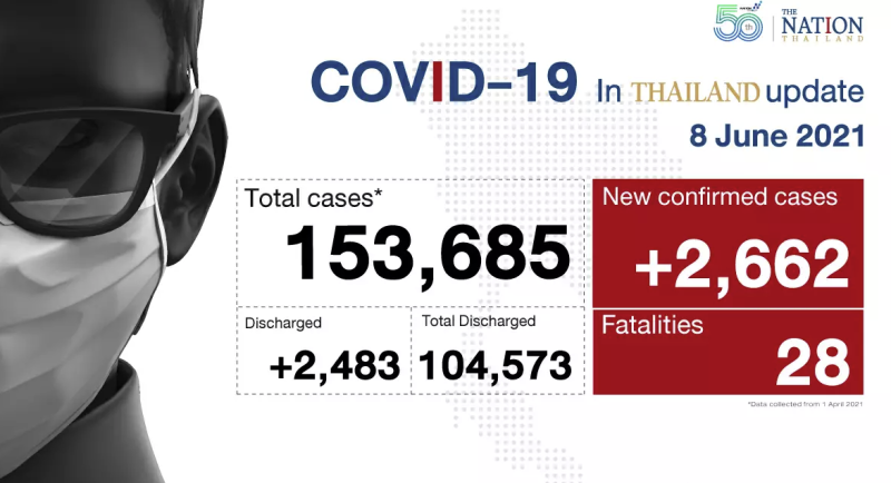 ☞ 일일 확진자 2,662명, 사망 28명. 교도소 발 신규 확진자 534명, 해외유입 16명. 누적 확진자 18만2,548명, 누적 사망자 1,297명. 신규발생 지역 방콕 1,098명, 사뭇쁘라깐 269명 등. 백신 접종 누계 463만4,941명.