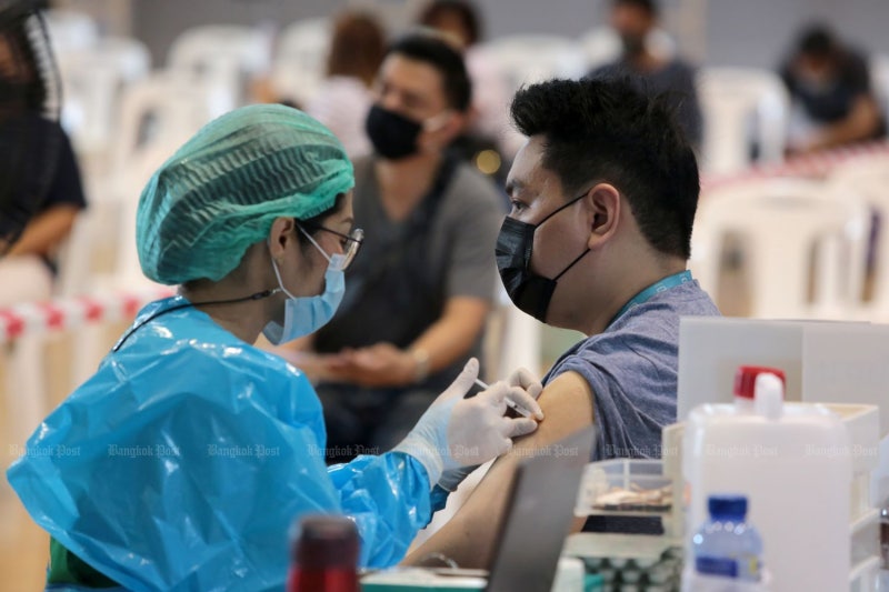 *태국 노동부는 일부 접종시설이 에어컨도 갖추지 못해 접종자의 체온이 상승, 접종할 수 없거나 명단의 불일치등 '기술적 오류' 때문에 중단한 것이지 백신의 부족 때문은 아니라고 주장했다. 노동허가증을 갖추고 사회보장에 가입된 외국인도 접종 대상이다. 백신의 종류는 아스트라제네카라고 밝혔다. (사진 방콕 포스트)