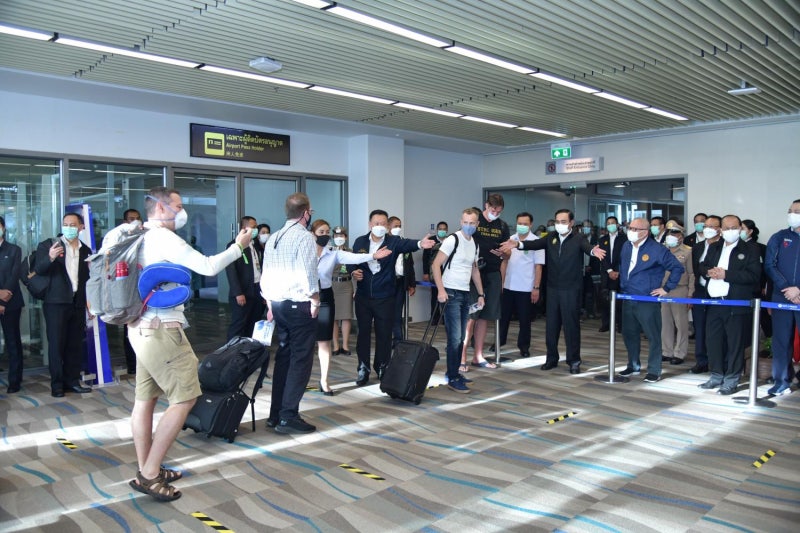 푸켓까지 내려간 쁘라윳 총리는 오후엔 입국장에 나가 싱가폴에서 오는 여행객들을 두 팔 벌려 환영했다. 예상못했던 지 맨 앞줄의 남성은 당황한 듯 뒤를 돌아보는 장면이 보도됐다.
