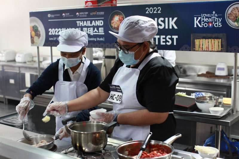 한식의 맛과 건강함을 겨루는 2022 태국 한식 요리 경연대회가 6월 23일 방콕 까셋삿대학 쿠킹클래스룸에서 열렸다.