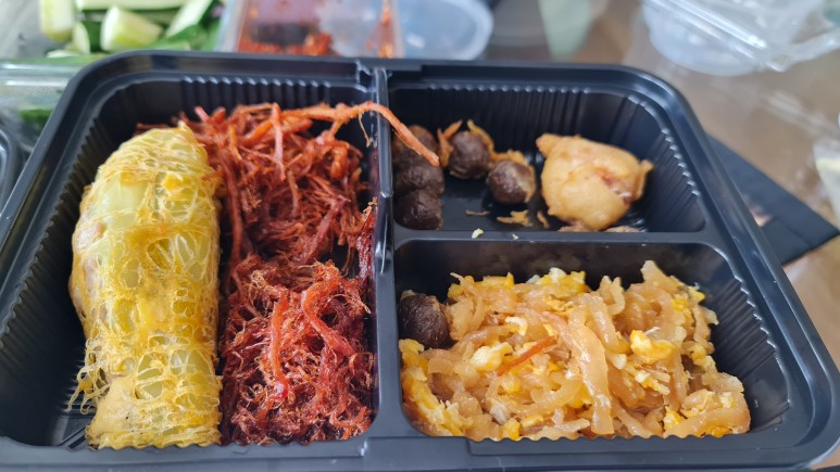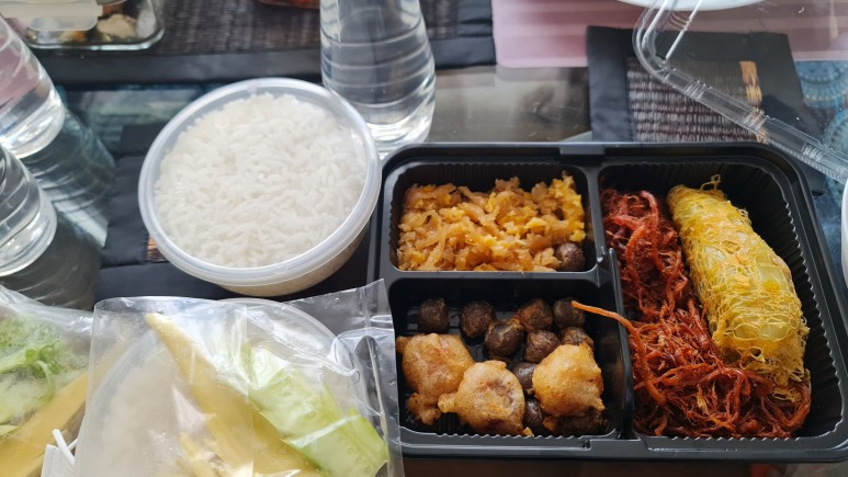 *태국 기업임원이 보내온 카우채 세트. 자스민 물에 얼음과 밥을 넣고 달콤 짭잘한 반찬과 함께 먹었다.