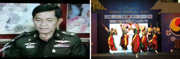 *2006년 쿠데타를 발표하는 태국 육군참모총장. 오른쪽은 정정불안속에 열린 2008년 코리아 페스티벌