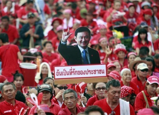 *탁신을 지지하는 시위대. 2000년대 이후 태국은 친탁신과 반탁신의 대립이 끝없이 이어지고 있다.
