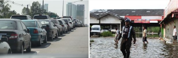북쪽에 많이 내린 비가 완만한 국토를 흘러 남쪽으로 오면서 이어진 홍수니 한마디로 ‘햇볕 쨍쨍한 날의 홍수’ 였다. 곳곳에 구호물품을 전달하러 많이 다녔다. 지금도 (태국어)로 파이팅이라는 뜻의 태국어 ‘쑤쑤’가 생각난다. ‘쑤쑤’만 계속 외치고 다닌 것 같다.”
