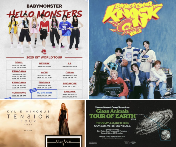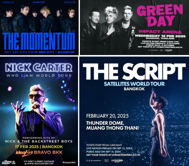 아일랜드 얼터너티브 록밴드 더 스크립트(THE SCRIPT)도 2월에 태국을 찾는 록밴드입니다. 2월 20일 무엉톤타니 썬더돔이 그 무대입니다. 영국 네오소올 가수 올리비아 딘(Olivia Dean)은 2월 22일 센터포인트 스튜디오에서 공연합니다.