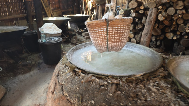지금도 그 우물이 그대로 보존되어 있고, 고대의 방법대로 솥에 나무를 떼어 수분을 증발시키는 방법으로 소금을 만들고 있다.