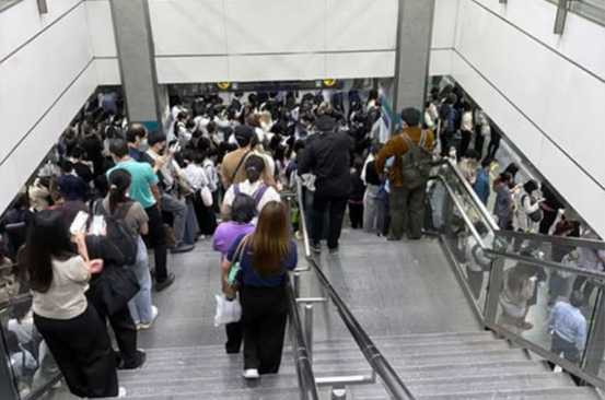 방콕 지하철( MRT) 블루라인이 출근시단대인 26일 오전 고장으로 멈춰셨다.