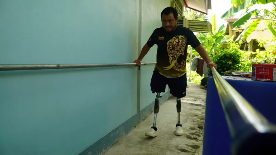 하루 1만2천원을 받는 일용직인 그의 아내는 남편이 장애를 갖게 된 뒤 가족의 삶이 완전히 달라졌다고 말했다. 워라윗은 독일 기업에서 지원받은 의족을 착용하고 있으며, 매일 2시간씩 걷는 연습을 하며 삶의 의지를 불태우고 있다.