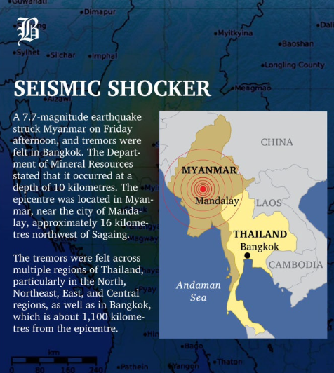방콕시는 이번 지진 피해 신고 2천 건을 접수했다고 밝혔다. 이 중 건물의 구조적 손상 사례 700건을 먼저 점검할 예정이다.