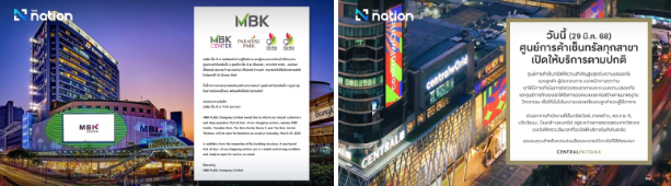 방콕의 대표적 쇼핑몰들은 대부분 안전 점검 결과 이상이 없다고 발표했다. 시암 패러건 등 백화점들은 토요일 평소보다 2시간 정도 개장했다.