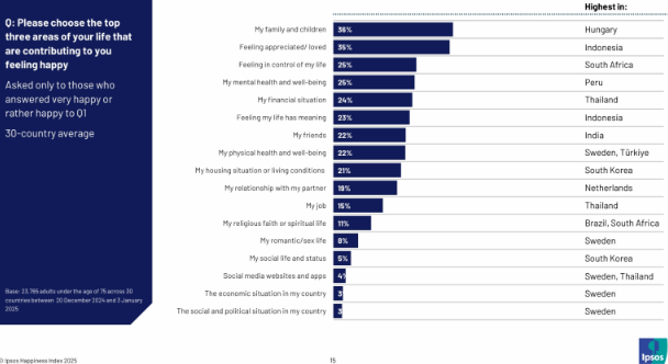 또한 가족, 이웃, 친구와의 유대가 끈끈하고 공동체 중심으로 움직이는 사회 구조 역시 고립감을 줄이고 심리적 안정감을 제공하는 요인으로 작용한다.