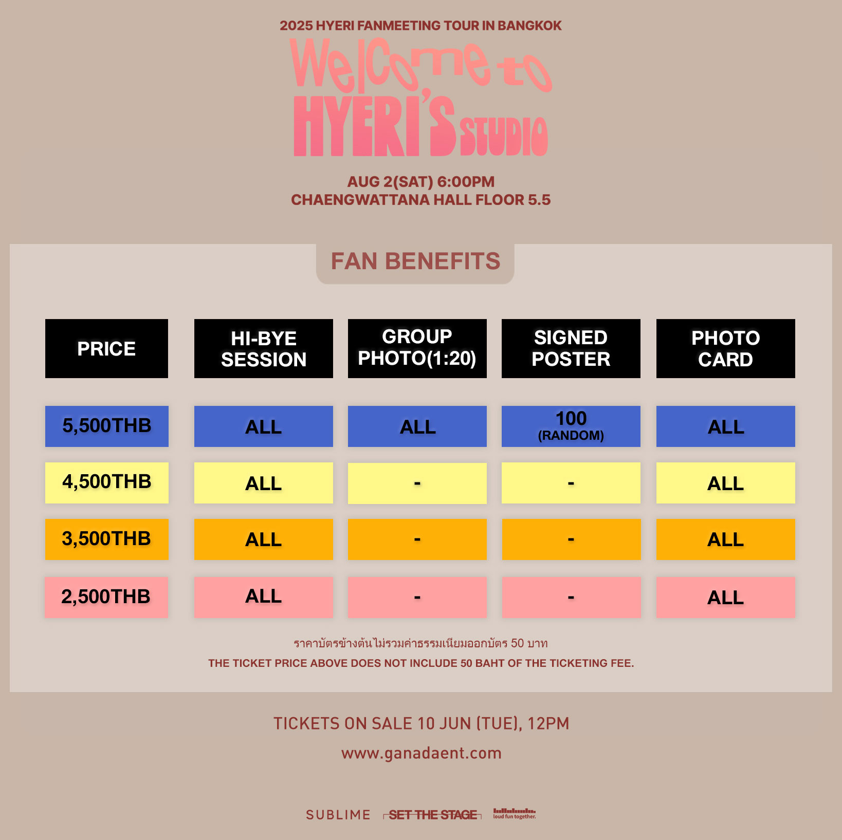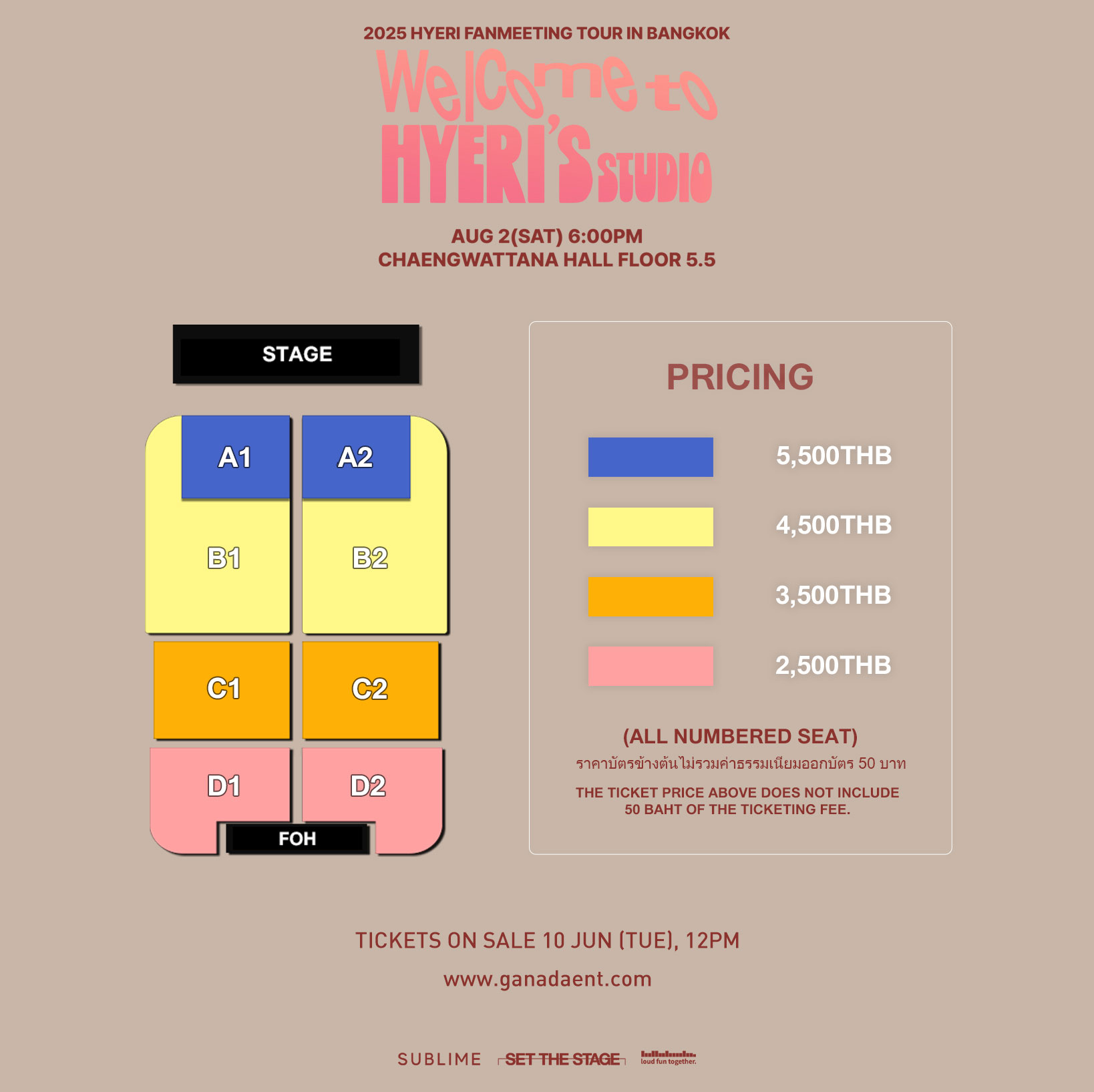 Ticket Price : 5500 / 4500 / 3500 / 2500 THB