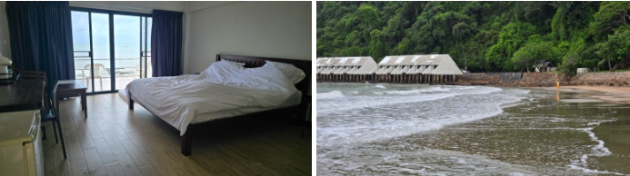 왕깨우 리조트에는 대형 빌라부터 텐트형 숙소까지 다양한 옵션이 있고, ‘촘탈레’라는 숙소는 바다 위에 떠 있는 듯한 구조로 지어져 있다. 그냥 침대있고, 별 시설 없지만 바다위에 떠 있는 느낌이랄까?