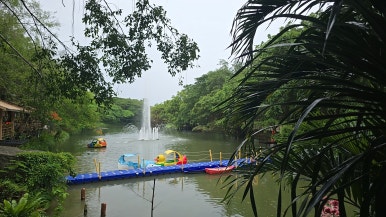 과일 뷔페장에서 약 200미터 떨어진 곳엔 작은 호수와 폭포가 있는 카페가 있다. 짚라인, 오리배, 그리고 커피 한 잔의 여유가 함께한다. 비가 와서 짚라인은 타지 못했지만, 운치 있는 시간이었다.
