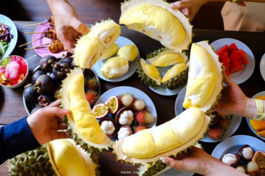 과일 뷔페 구역에 도착하자, 본격적인 ‘두리안 먹방’이 시작된다.