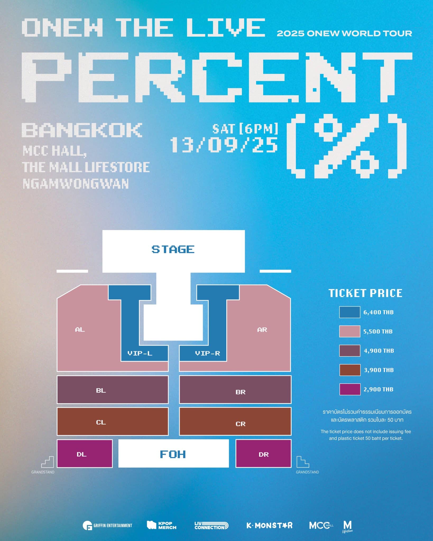 Ticket Price : 6,400 (VIP)/ 5,500/ 4,900/ 3,900/ 2,900 THB