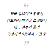 태국 제2군구 사령부는 캄보디아군이 민간인 거주지를 방패 삼아 포병을 배치했으며, 오전 8시 50분에는 따므언톰 사원 유적지에 포격을 가했다고 전했다.