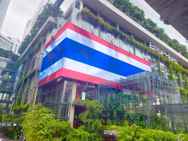 방콕 고층 빌딩의 대명사인 바이욕 타워가 국기를 형상화한 조명을 밝힌 데 이어, Siam Paragon, ICONSIAM, Siam Center를 운영하는 시암 피왓(Siam Piwat), 센트럴월드, 아이콘시암, 더몰 그룹 계열의 백화점, 랑싯 퓨처파크, Zpell 등 지역의 랜드마크 건물들이 일제히 대형 전광판 또는 건물 전체를 태국 국기로 수놓았다.