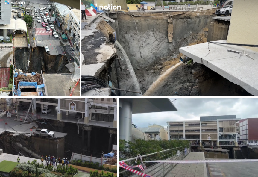 마치 폭격을 맞은 듯 도로 한 구역 전체가 폭삭 주저앉았는데 9월 24일 오전 7시 13분쯤 방콕 두싯 지역 삼센로드 국립 와지라병원 앞에서 처음 발견됐다. 이곳은 짜오프라야 강과 전승기념탑과도 멀지 않다.