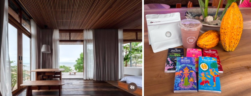 지역의 재료와 제품을 사용하며, 시그니처 메뉴인 타이 티 두리안 라떼와 함께 코코넛 슈가 시럽, 커피, 초콜릿, 새우 페이스트 등 지역에서 만든 제품도 판매한다.