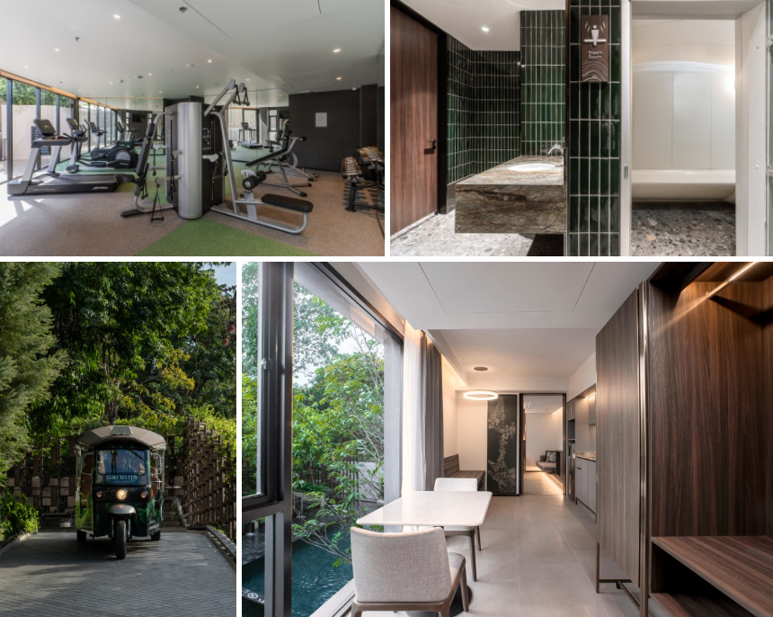 공용 공간에는 야외 수영장, 피트니스룸, 스팀룸이 마련되어 있으며, 오전 6시부터 자정(24:00)까지 수쿰윗 16번 도로와 MRT 시리킷역을 연결하는 무료 툭툭 셔틀 서비스를 제공한다.