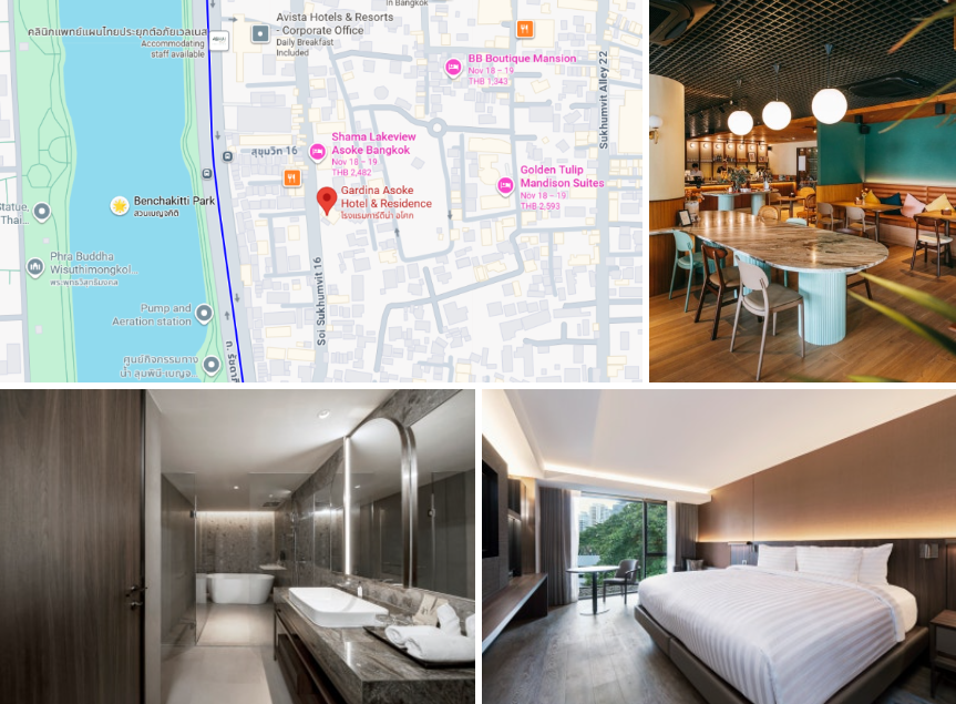 퀸시리킷 국립컨벤션센터(Queen Sirikit Convention Center)와 MRT 시리킷역에서 가까운 거리에 있다. 현대적이고 세련된 인테리어의 객실과 레지던스를 다양하게 보유하고 있으며, 디럭스룸(Deluxe), 프리미어룸(Premier), 원베드룸(One-Bedroom), 투베드룸(Two-Bedroom), 쓰리베드룸(Three-Bedroom) 등 여러 타입이 준비되어 있다. 모든 객실은 넓은 공간과 함께 미니 주방, 캡슐 커피머신, 고속 인터넷 등 편리한 시설을 완비하고 있다.