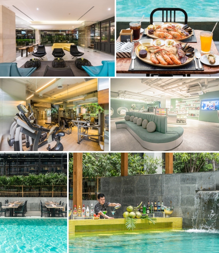 공용 시설로는 야외 소금물 수영장, 피트니스룸, 인터내셔널 및 태국 요리를 제공하는 “Patio Bar & Restaurant”, 그리고 다양한 음료와 칵테일을 즐길 수 있는 바가 마련되어 있다.