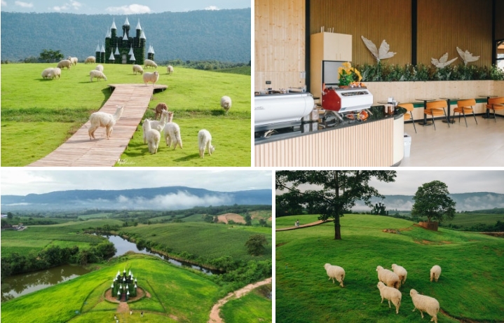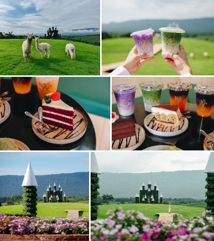 케몽 알파카 카오야이는 뉴질랜드 분위기의 카페도 함께 운영하며, 알파카와 양에게 먹이를 주면서 음료와 디저트를 즐길 수 있습니다.
