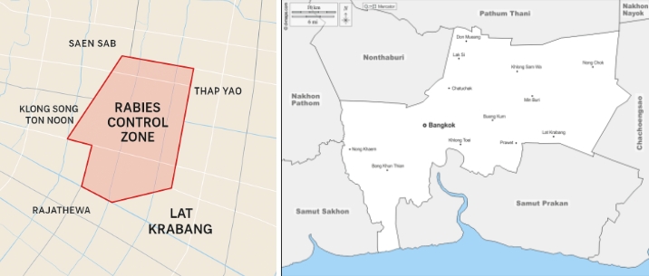 특히 랏크라방 일대는 방콕 외곽 주거지와 공장·창고 지역이 혼재하며 유기견 밀집지역이 있어 감염 확산 위험이 높다.
