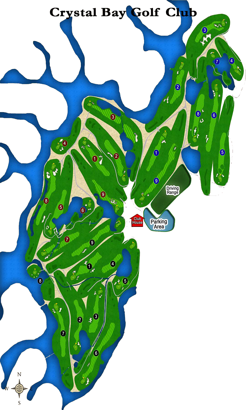 총 27홀 규모의 이 골프장은 9홀씩 3개 코스로 구성돼 있으며, 각 코스마다 고저차와 장애물 배치가 달라 색다른 공략 재미를 선사한다. 전통적인 페어웨이 설계와 혼합형 홀 구성이 조화를 이루고, 코스 전반에 걸쳐 워터 해저드가 핵심 요소로 작용한다. 많은 홀에서 물이 페어웨이를 감싸거나 그린 공략 시 수로를 넘겨야 해 정확한 샷과 전략적인 판단이 요구되며, 벙커 또한 요충지에 배치돼 플레이의 긴장감을 더한다.