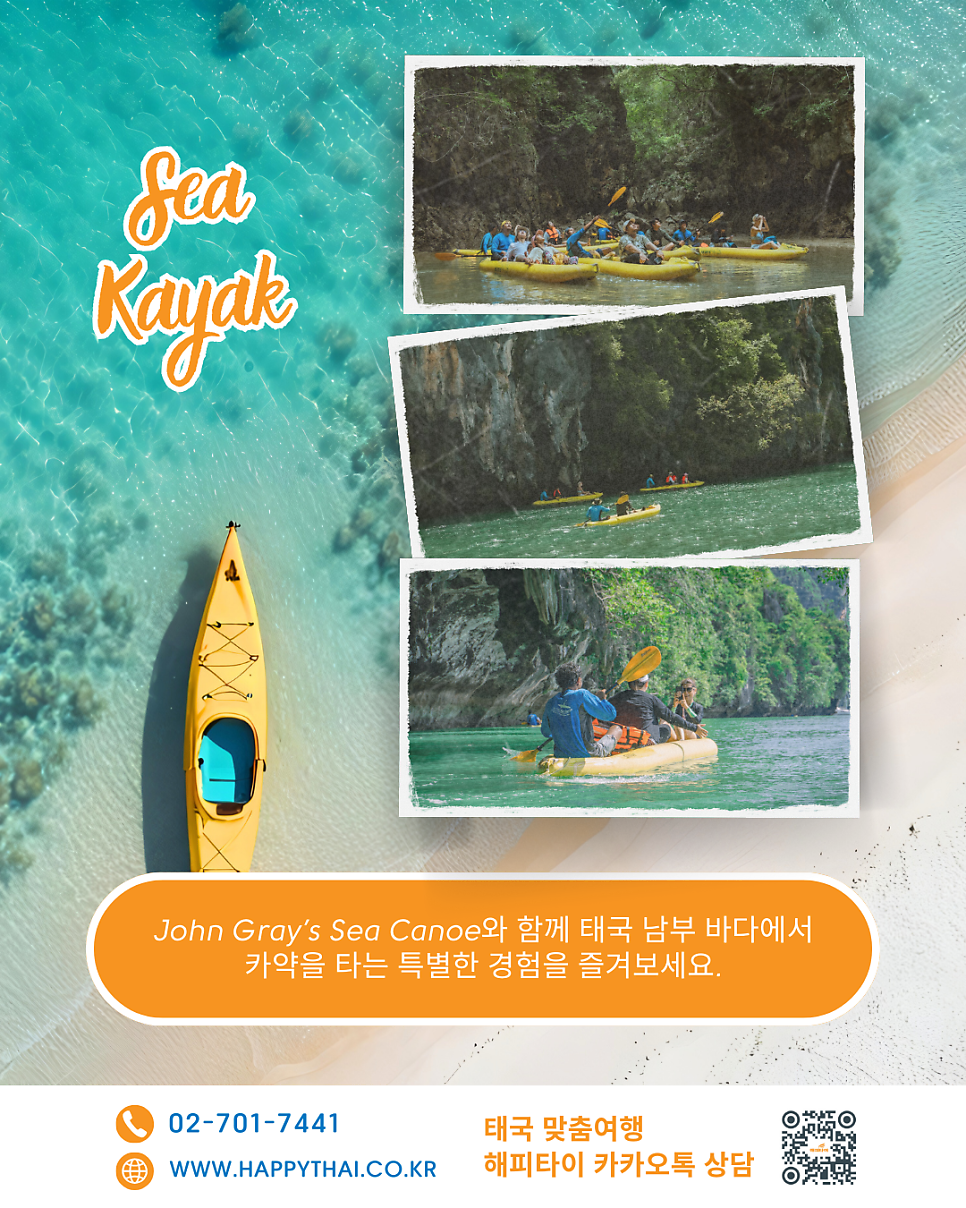 존 그레이 씨카누(John Gray’s Sea Canoe)와 함께 태국 남부 팡아만의 자연 속에서 바다 카약을 즐길 수 있는 일정이다.