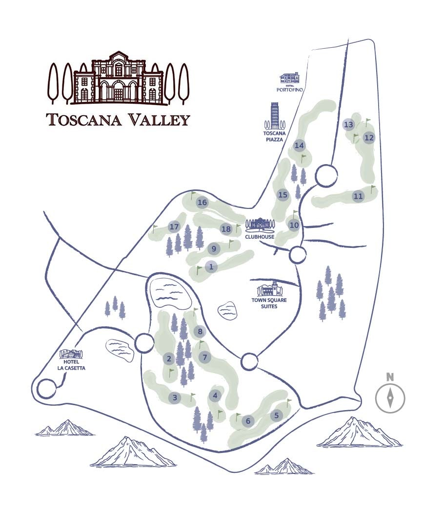 토스카나밸리 컨트리클럽은 미국의 저명한 골프 코스 설계가 밥 맥팔랜드(Bob McFarland)와 찬낫 르엉끄리타야(Chanut Ruangkritaya)가 공동 설계한 산악형 골프 코스로, 태국 내 최고의 마운틴 코스를 목표로 탄생했다.