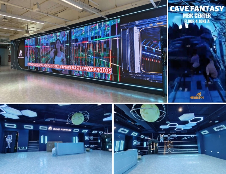 방콕 마분크롱(MBK) 4층에서 만나는 케이비 판타지(CAVE FANTASY)는 중국 3D 몰입형 전시다. 별도의 장비 없이 맨눈으로 3차원 효과를 체험할 수 있다.