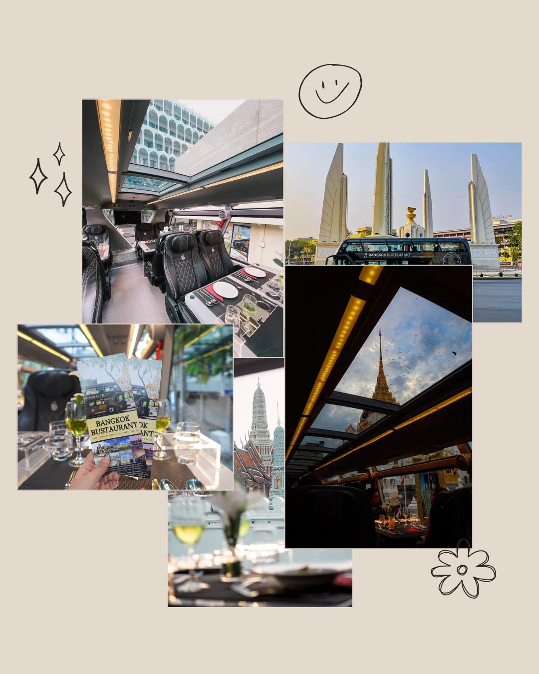 방콕 버스토랑은 버스 위에서 식사를 즐길 수 있는 이동식 레스토랑이다. 2층 버스에서 식사를 하면서 태국의 주요 랜드마크와 역사적인 기념물들을 감상할 수 있다.