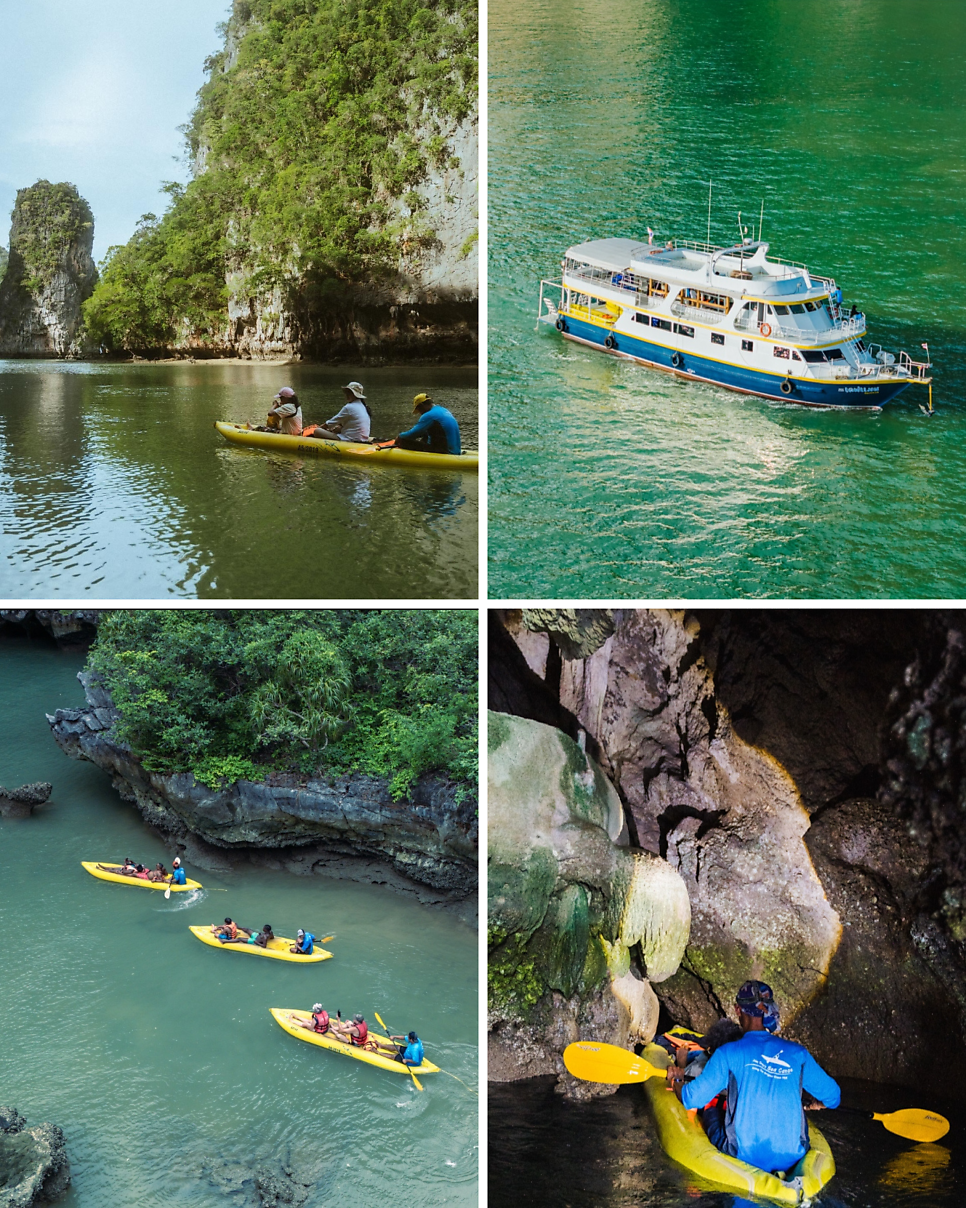 숙련된 직원이 동승해 노를 저어 주기 때문에 참가자는 편안하게 앉아 팡아만의 웅장한 석회암 절벽과 자연 생태계를 가까이에서 감상할 수 있다.