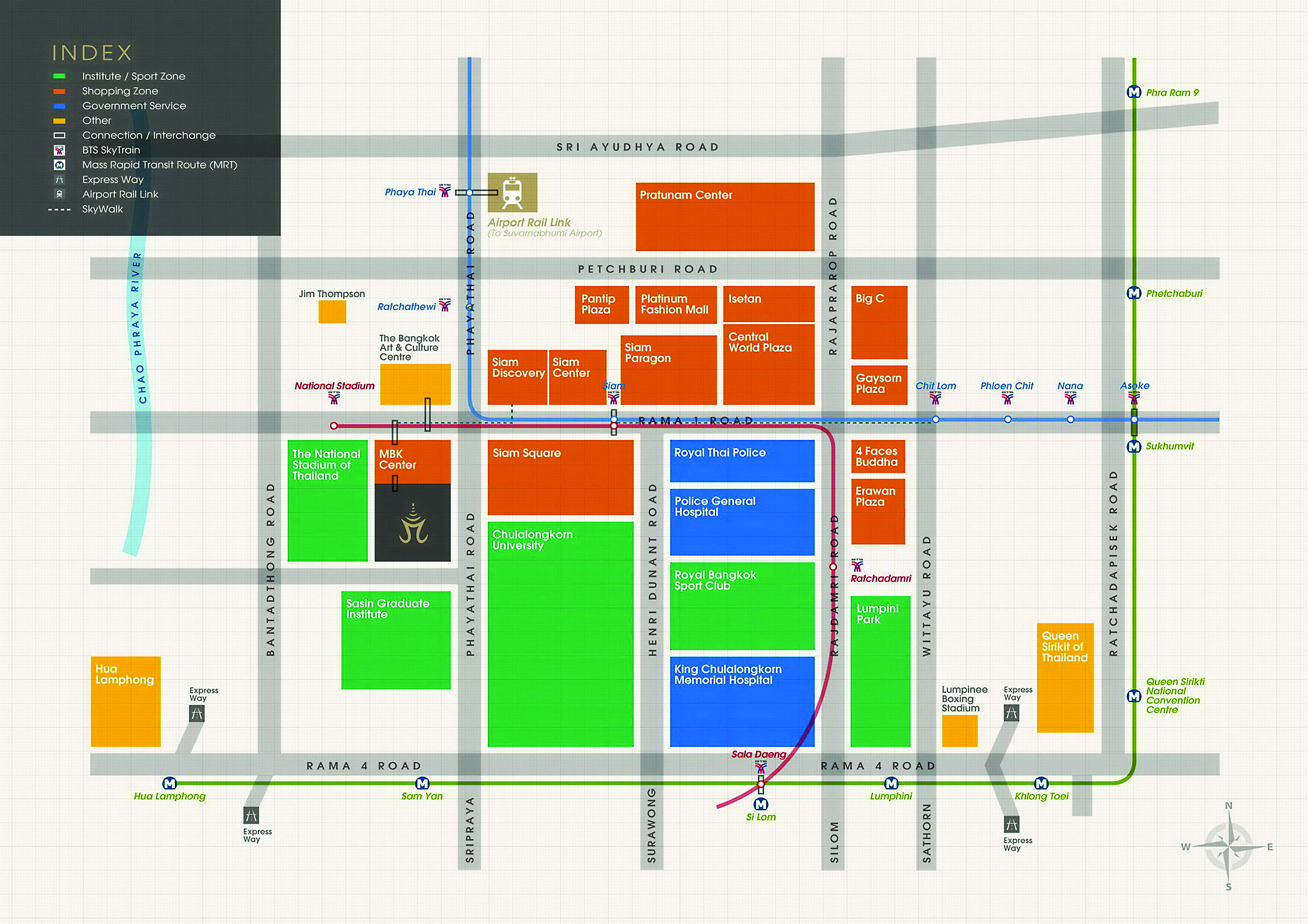 방콕 수완나품 공항에서 호텔까지는 45분, 돈무앙 공항에서는 25분 내외이며, BTS 내셔널 스테디움 역 또는 시암 역에서 내려서 도보로 10분 거리에 위치해있다. 시암스퀘어, 시암파라곤, 시암디스커버리, 센트럴월드프라자 등 방콕 시내 상업 중심지와 유명 백화점을 스카이워크로 한번에 갈 수 있다.