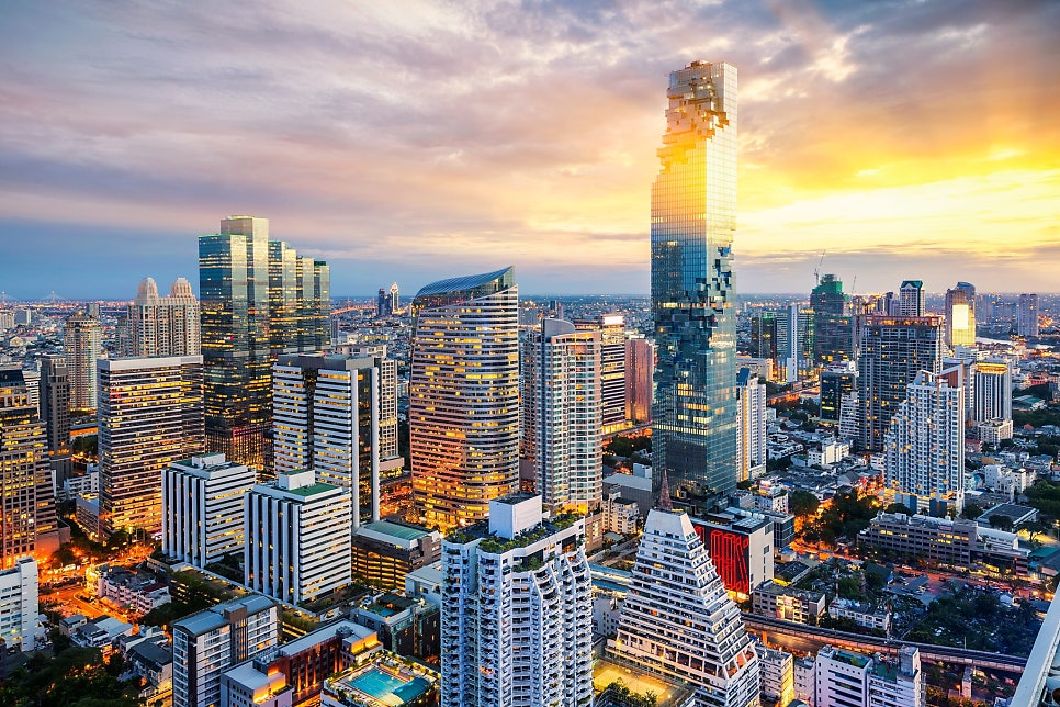 | 킹파워 마하나콘은 태국에서 가장 높은 전망대로, 방콕의 랜드마크인 마하나콘 빌딩 꼭대기에 위치해 있다. 깁밥 옆구리 터진 듯, 또 픽셀처럼 보이는 독특한 디자인의 이 초고층 빌딩은 약 314미터로 방콕의 상징적이기도 하다.