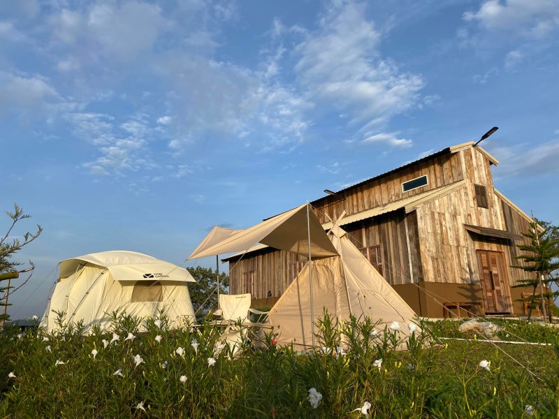 | 사라부리의 ‘Ban Rai Lom Bon’은 들판과 360도 산 전망에 둘러싸인 헛간 스타일의 카페입니다.