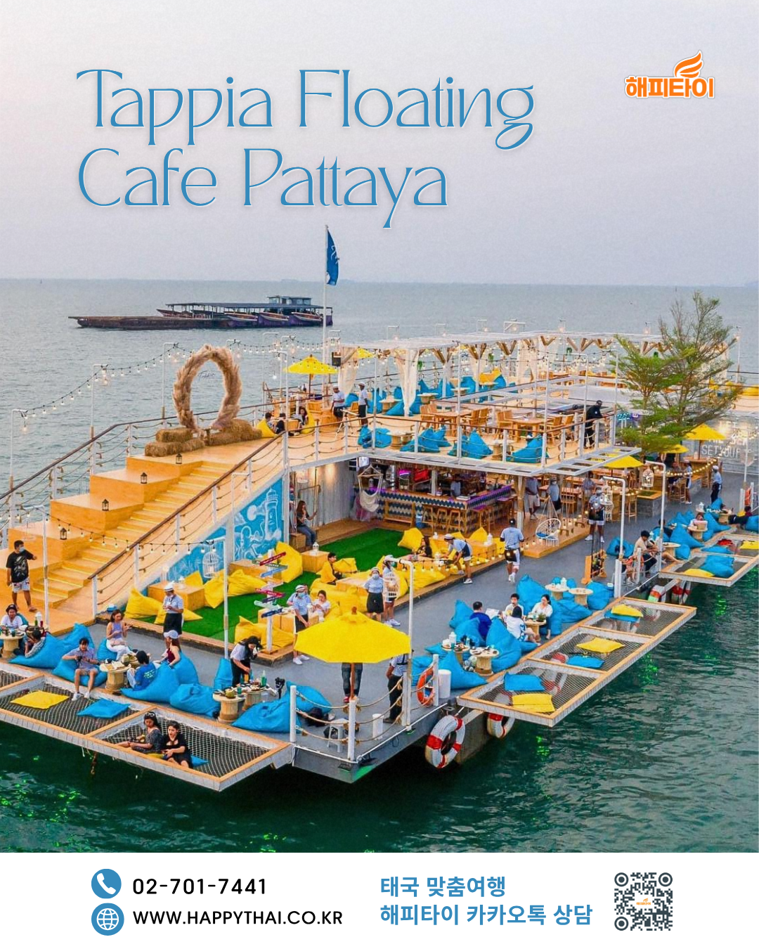 | ‘탑피아 플로팅 카페 파타야(Tappia Floating Café Pattaya)’는 파타야 바다 한가운데에 위치한 수상 카페로, 루프탑에서 파타야 전경을 360도로 감상할 수 있다. 다양한 시설과 액티비티도 함께 이용할 수 있다.